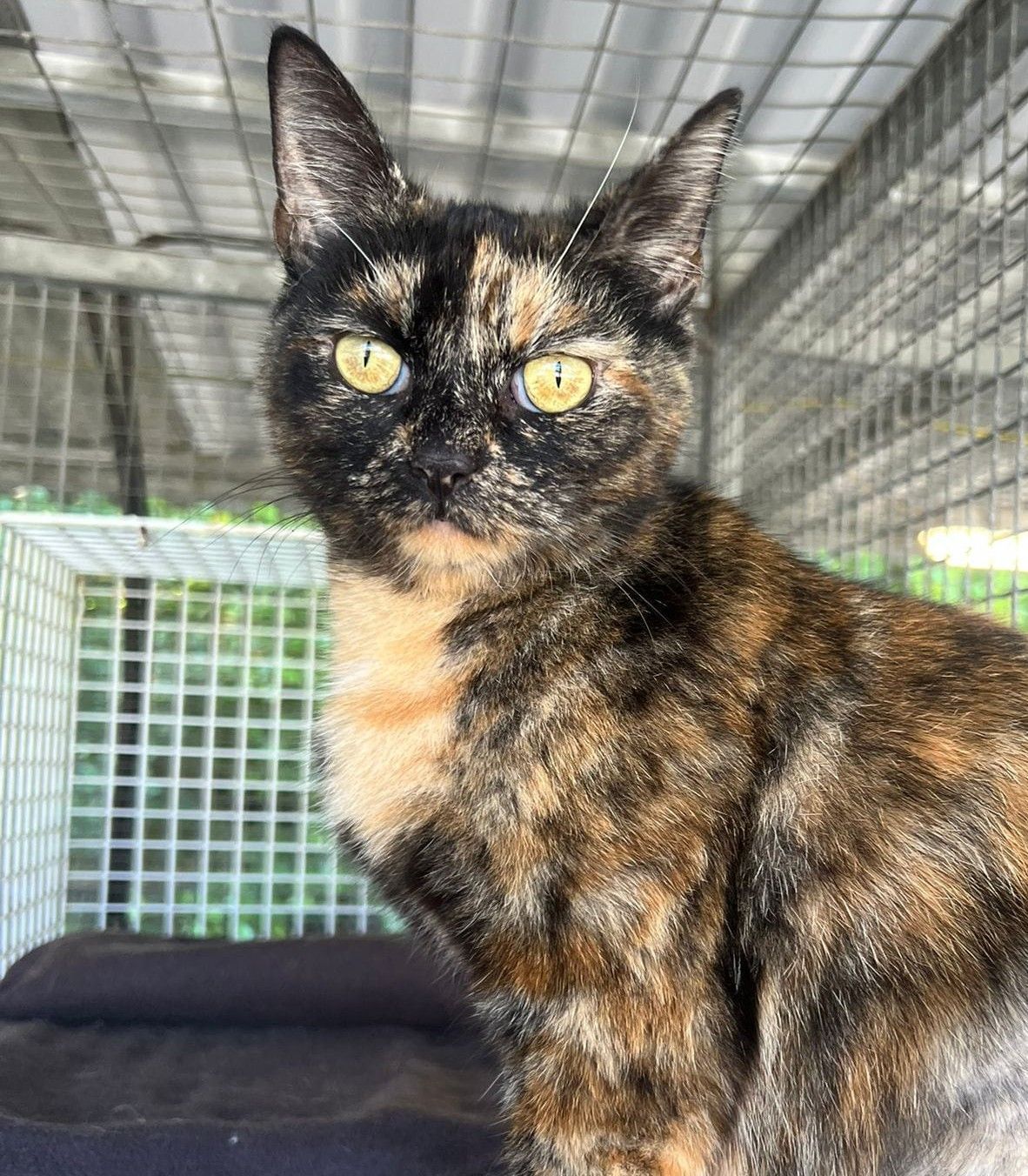 COLA - An adorable 3 year old dark tortie female. Lovely affectionate nature. Used to other cats and older children.