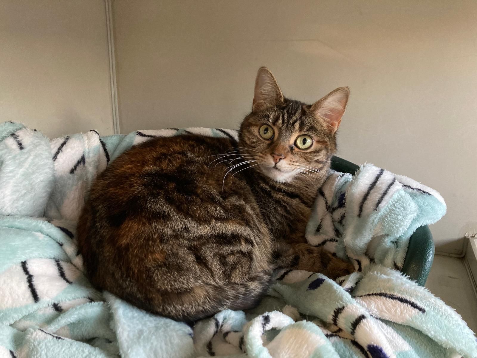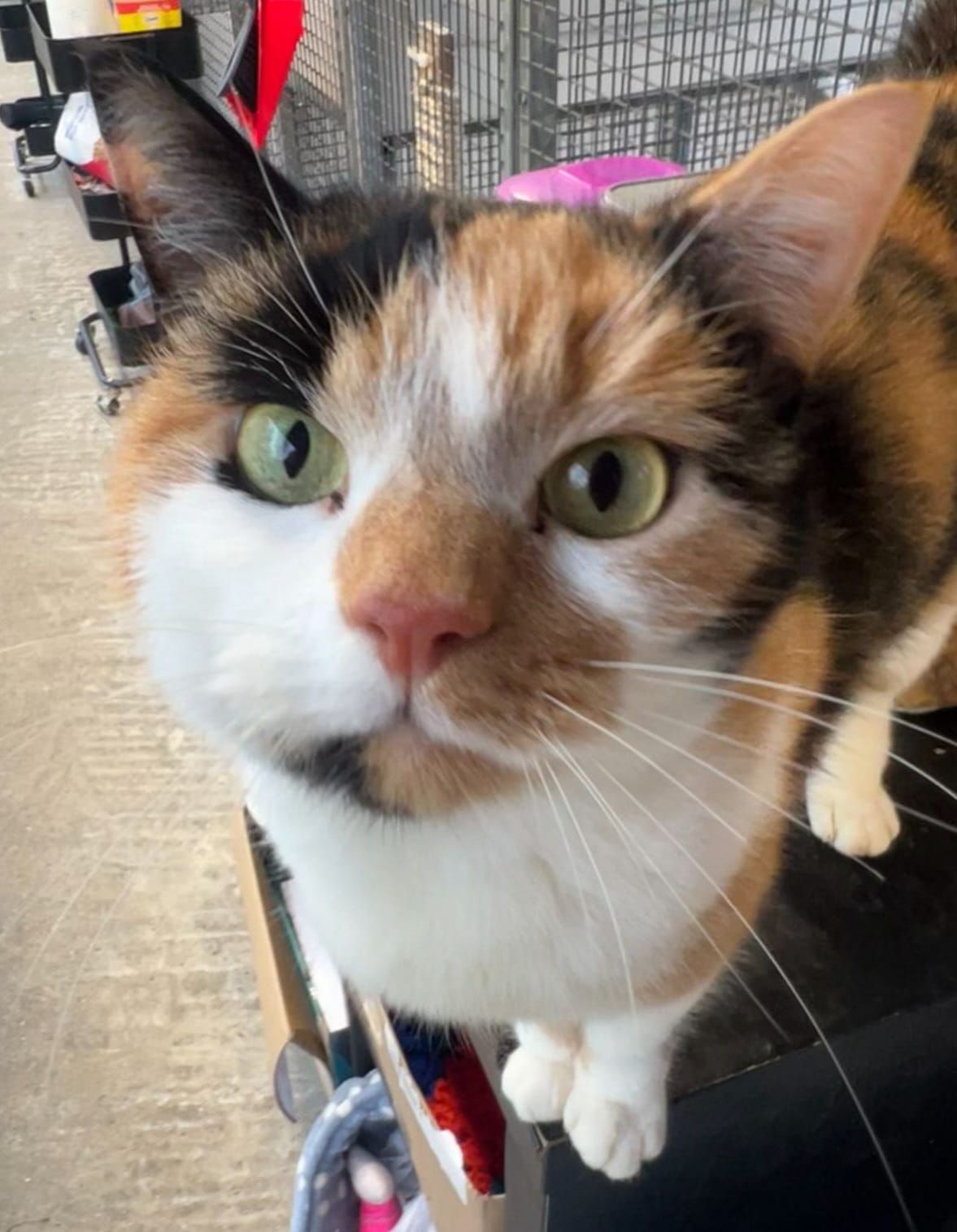 MYA - a gorgeous 2 year old calico female with a very sweet nature. She has lived with other cats and children.